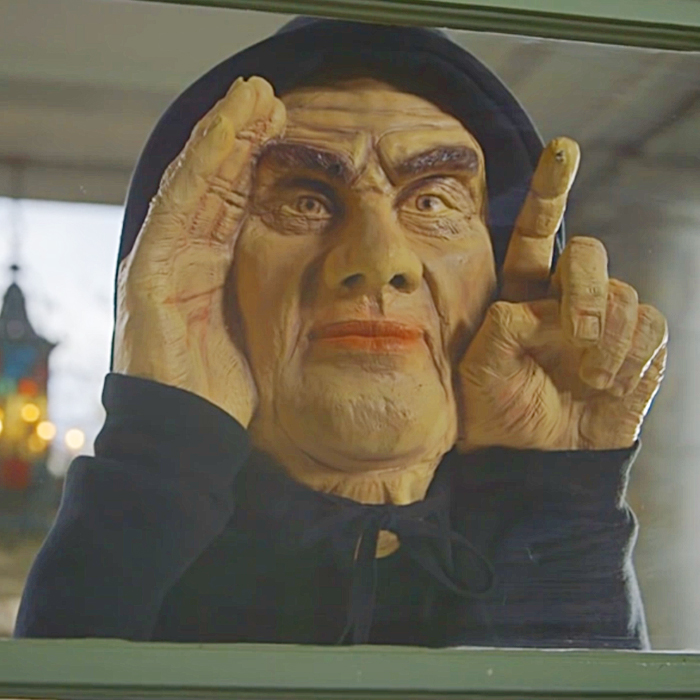 Three-dimensional peeper prop that hangs from and taps on a window. It will hand on any type of window from indoor and outdoor. The motion activated prop will tap three times when anyone walk through the window. You can also set the timing to tap three times for every 10 seconds. Itโ€™s made fromย Vinyl and real fabric. This prop comes with a on/off and timer buttons. It needs a three AAA batteries to operate. Check the peeper prop on Grandinroad.com!