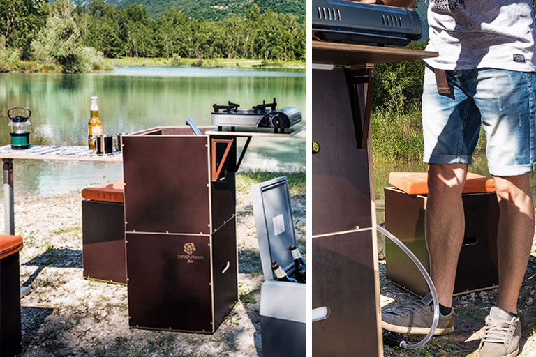 In this case, the sleeping panel with an adjustable leg will help you create a dining table. Two of the boxes contains a sink with draining and a cartridge stove to enjoy the outdoor cooking. You can also customize the size of a bed with that adjustable legged panel. Currently, the Girovaga Box is raising funds on Kickstarter with the goal of US$4,715. If you are interested, you can get one for the base pledge of US$2,345.