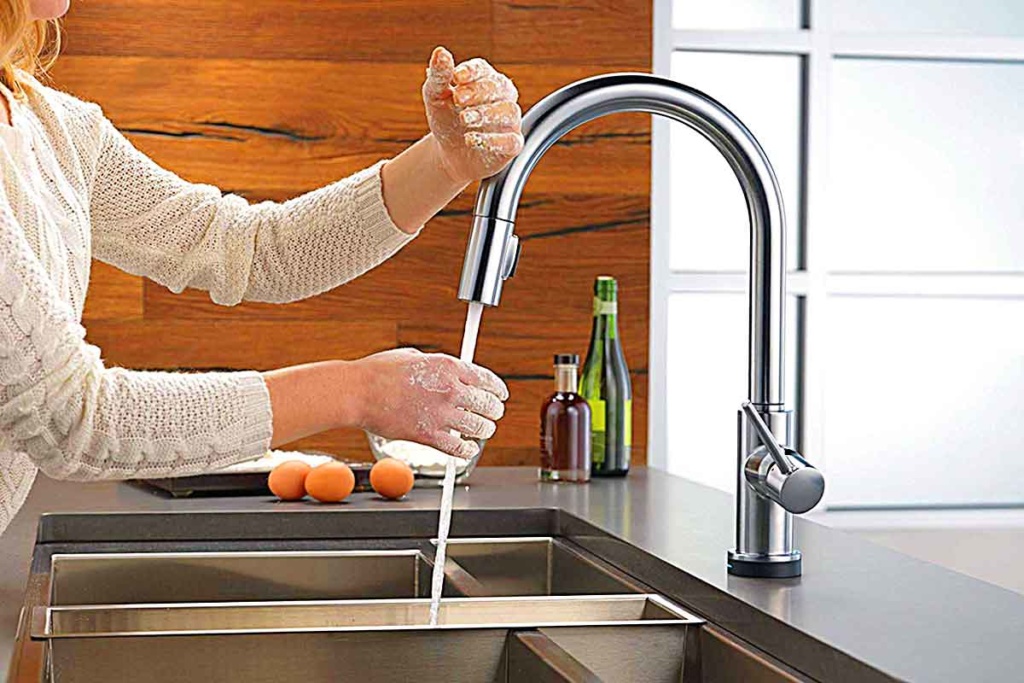 This voice-activated faucet also responds to touch. So you can simply tap anywhere on the faucet’s spout or handle with your wrist to access the water while you prepare the pizza dough. This Amazon Alexa faucet helps you to clean your hands completely without messing up your whole sink and faucet.