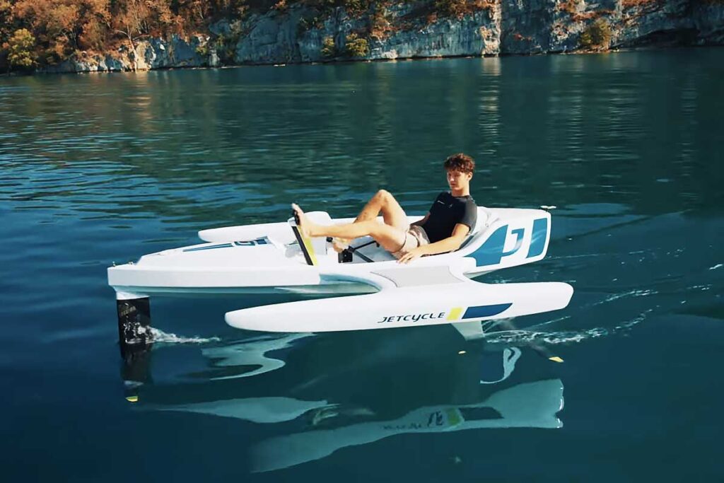 Picture gliding over water effortlessly, propelled by both human leg power and electric assistance. The E-JetCycle boat offers various levels of assistance, allowing riders to tailor their effort and savor the journey. With a long-lasting battery providing up to 3 hours of autonomy, it’s the ideal companion for water sports and summer activities.