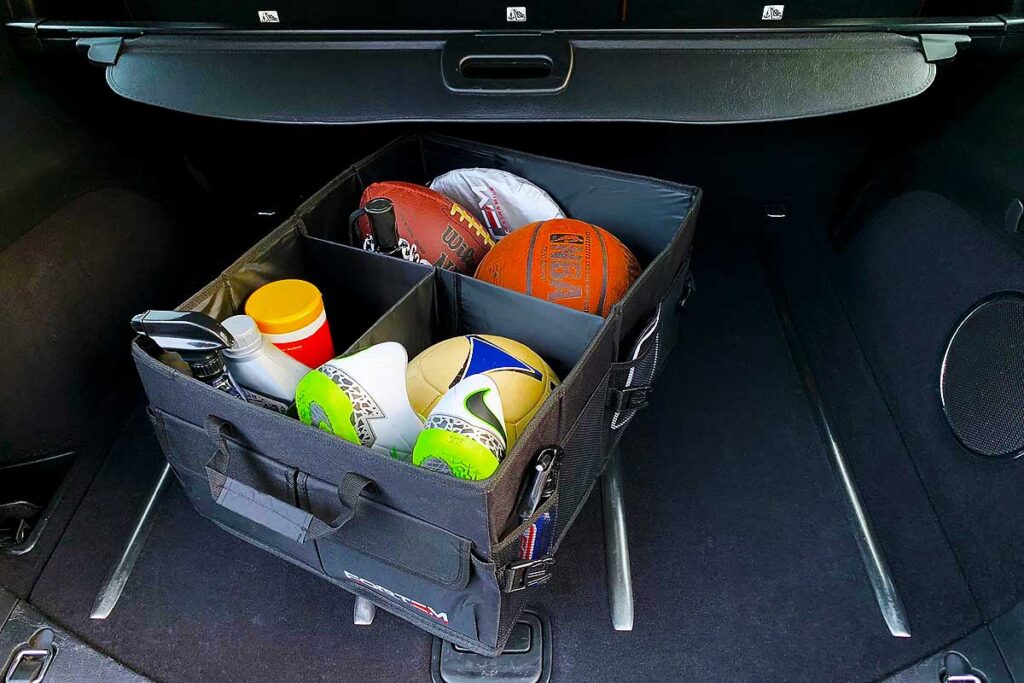 Moreover, it measures 14.5×12.5×22.5 inches in full size and turns as small as 14.5×12.5×3 inches when folded. If you’re looking for a durable and practical solution for cargo storage in your car, then check out the FORTEM auto trunk organizer on Amazon.com!