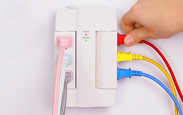The space Plug provides up to 2100 joules of surge protection. So when the light is red that indicates the plug is completely protected against surges. Finally, the Globe Electric Swivel Surge Protector prevents your TV desk from an ultimate mess of cords, surge protectors, and power adapters. Check the Space Plug surge protector on Amazon.com!ย