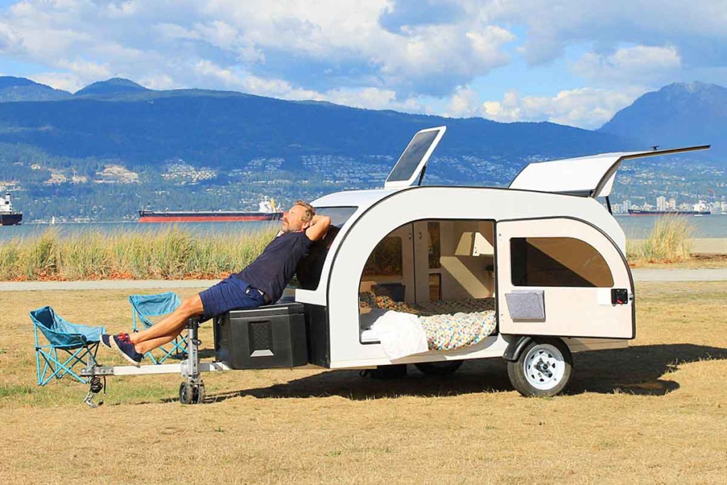 This unique teardrop camping trailer was designed for those who want to spend their maximum amount of time outdoor without compromising their comfort.ย However, this small travel trailer was created by a Canad-based company called ‘Droplet’. It features a queen-size bed, dual-stove burner, sink, and a compact fridge.