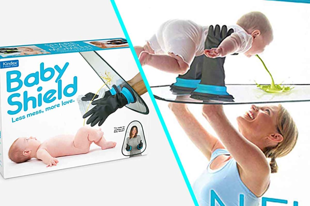 Such as ‘the baby shield protects you from unexpected squires and spurts that sloppy infants emit’ and “helps you to change diapers without getting mess’. So that graphics and wordings on the box make the victim think that youโve gone insane.